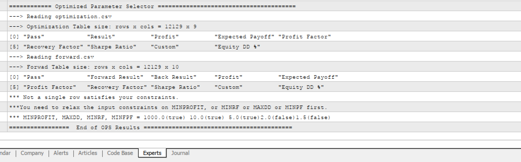 Once you have the two csv files, run this script and read the results from the "Expert" tab in the Metatrader 5 terminal. Examples are given in the User manual linked below.