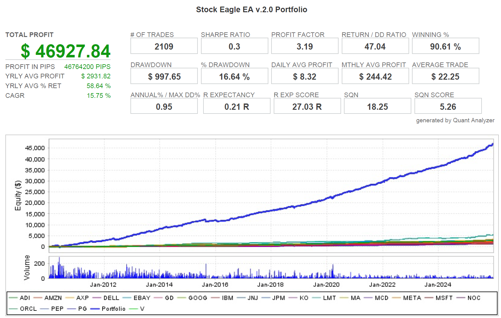 I am excited to present to you a new Expert Advisor after 5 years – Stock Eagle EA, designed for trading on the U.S. stock market. Many will ask: how is this EA different from Stock Trader Pro (product page >>), which has proven itself over the past 5 years with stability and safety even during Black Swan events such as Trump’s tariffs? The answer is simple: