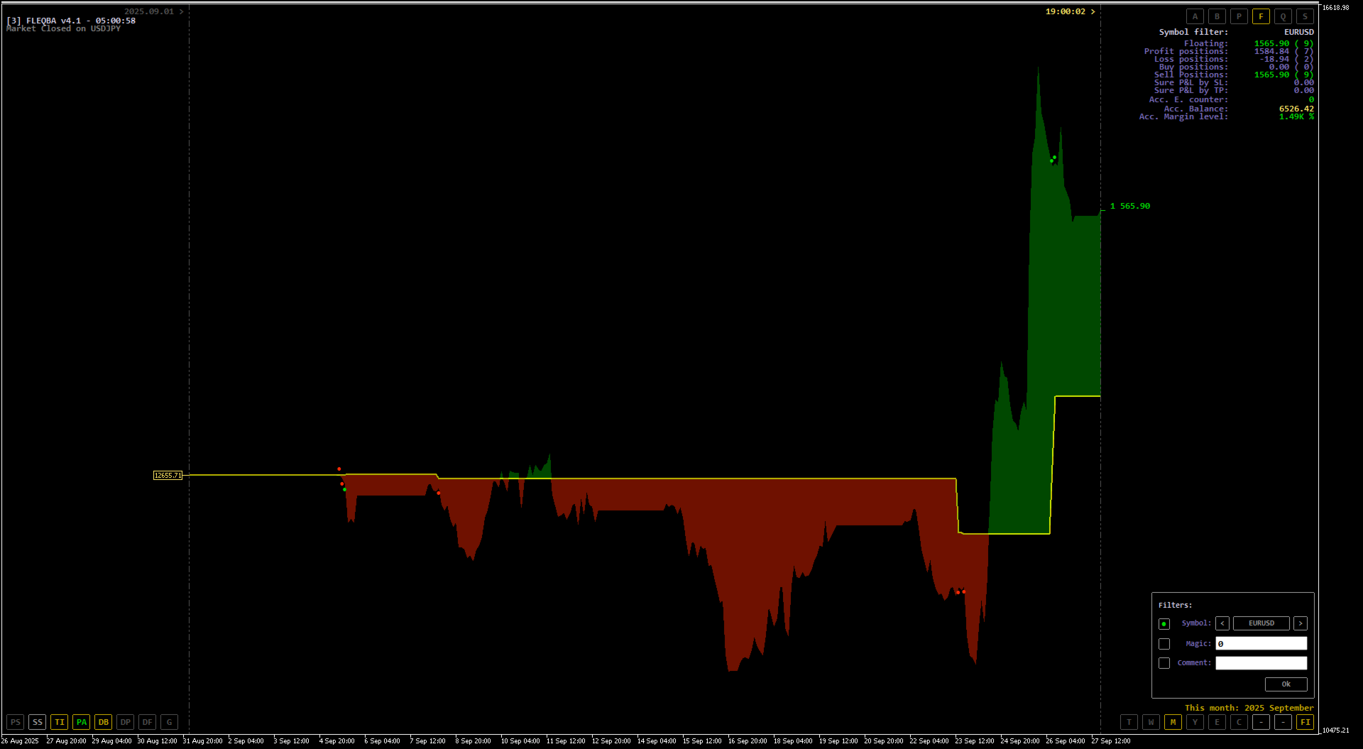 - [FI] Filters – Filtra per simbolo, numero magico o commento. Più condizioni sono combinate con logica E, quindi tutte devono essere soddisfatte.