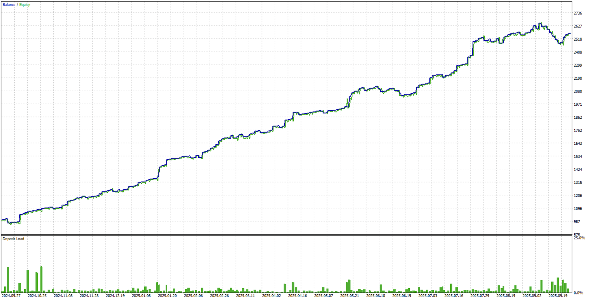 Bilanciamento della volatilità: regola la dimensione delle posizioni in base alla volatilità corrente rispetto ai livelli storici. Distribuzione dei profitti: garantisce che nessuna coppia domini la crescita del conto, mantenendo prestazioni costanti e diversificate.