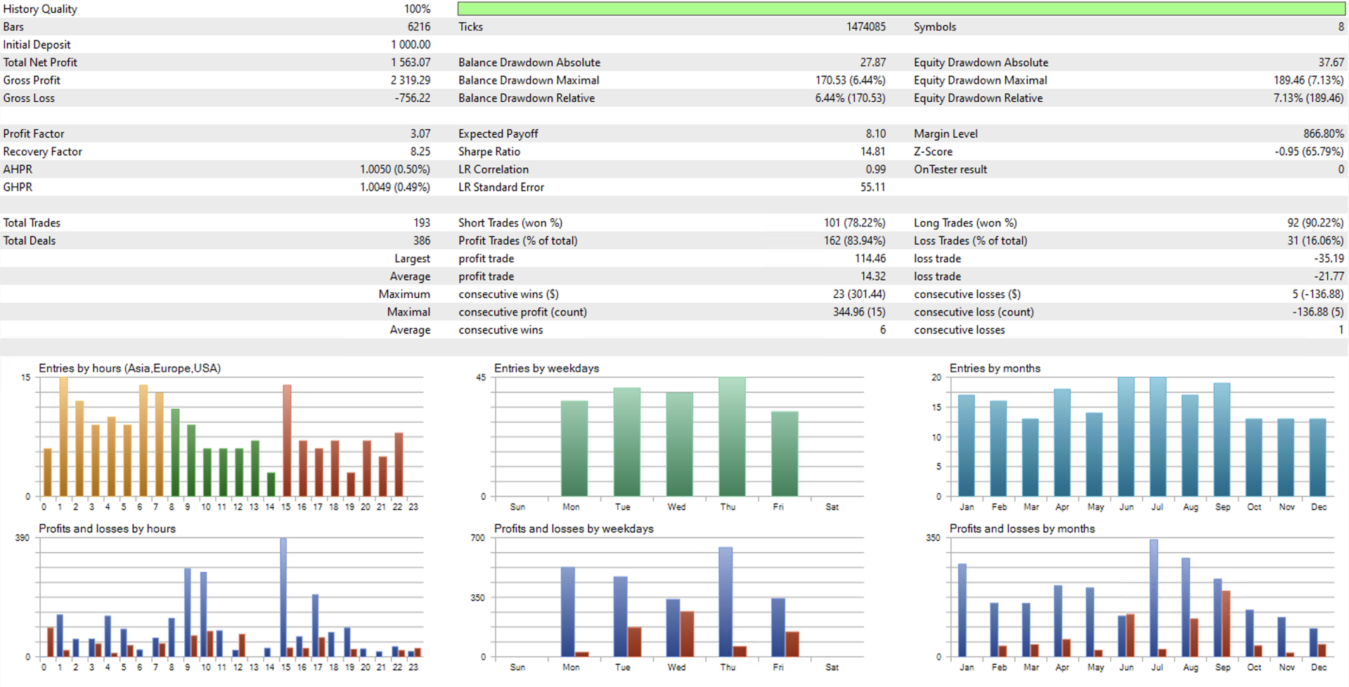 - Modello di crescita del conto: obiettivo di crescita dello 0,3% per ciclo di trading, combinando le otto coppie per generare una crescita composta coerente attraverso la cattura diversificata delle opportunità.