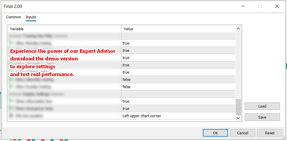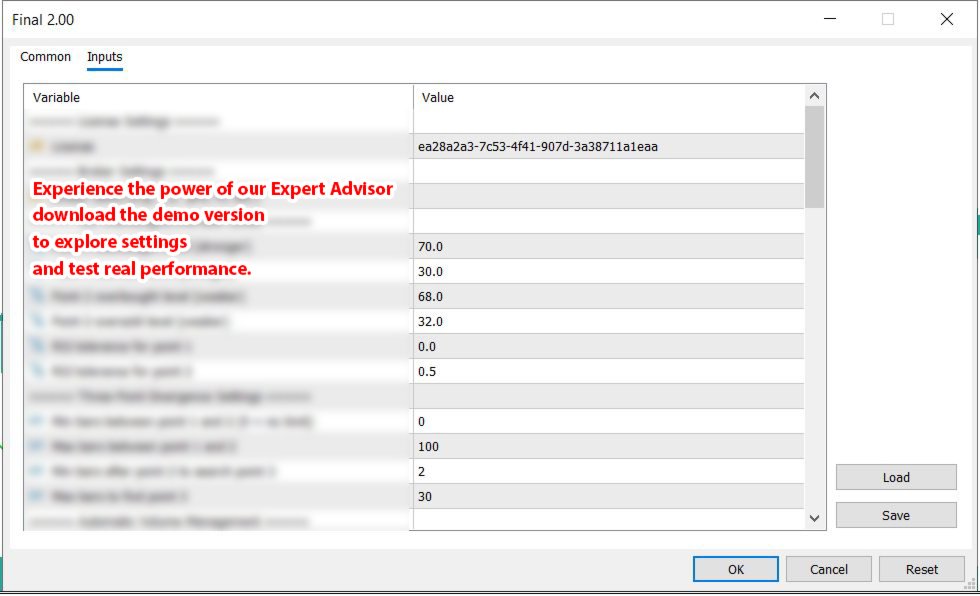 Trading Forex and Commodities involves significant risk. Past performance is not indicative of future results. It is recommended to test the EA on a demo account to understand its logic and risk profile before using it on a real account.