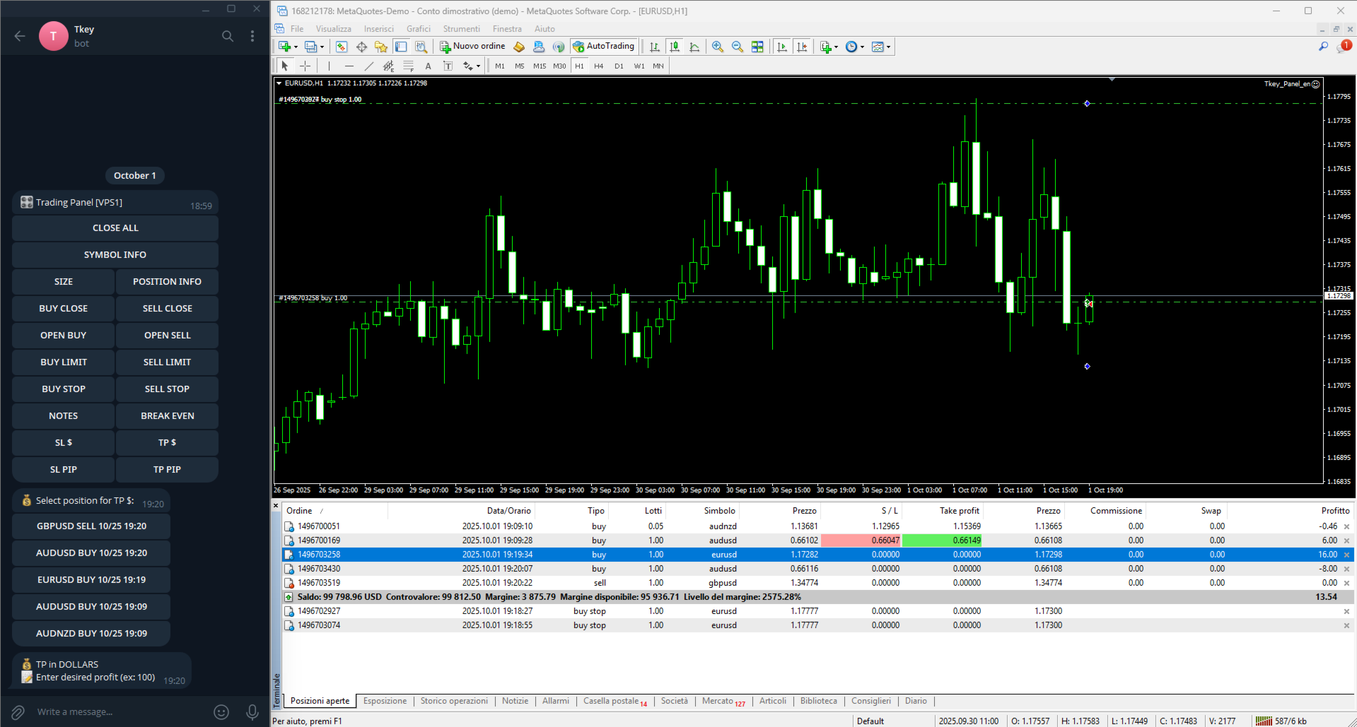 - Ordini pendenti: Buy/Sell Limit e Buy/Sell Stop con prezzo e scadenza