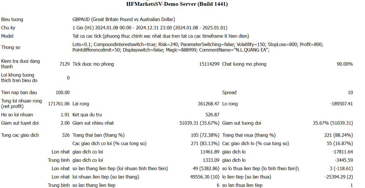 These currency pairs are selected for their relative stability and strong compatibility with the EA’s strategy, optimizing trade management and risk control.