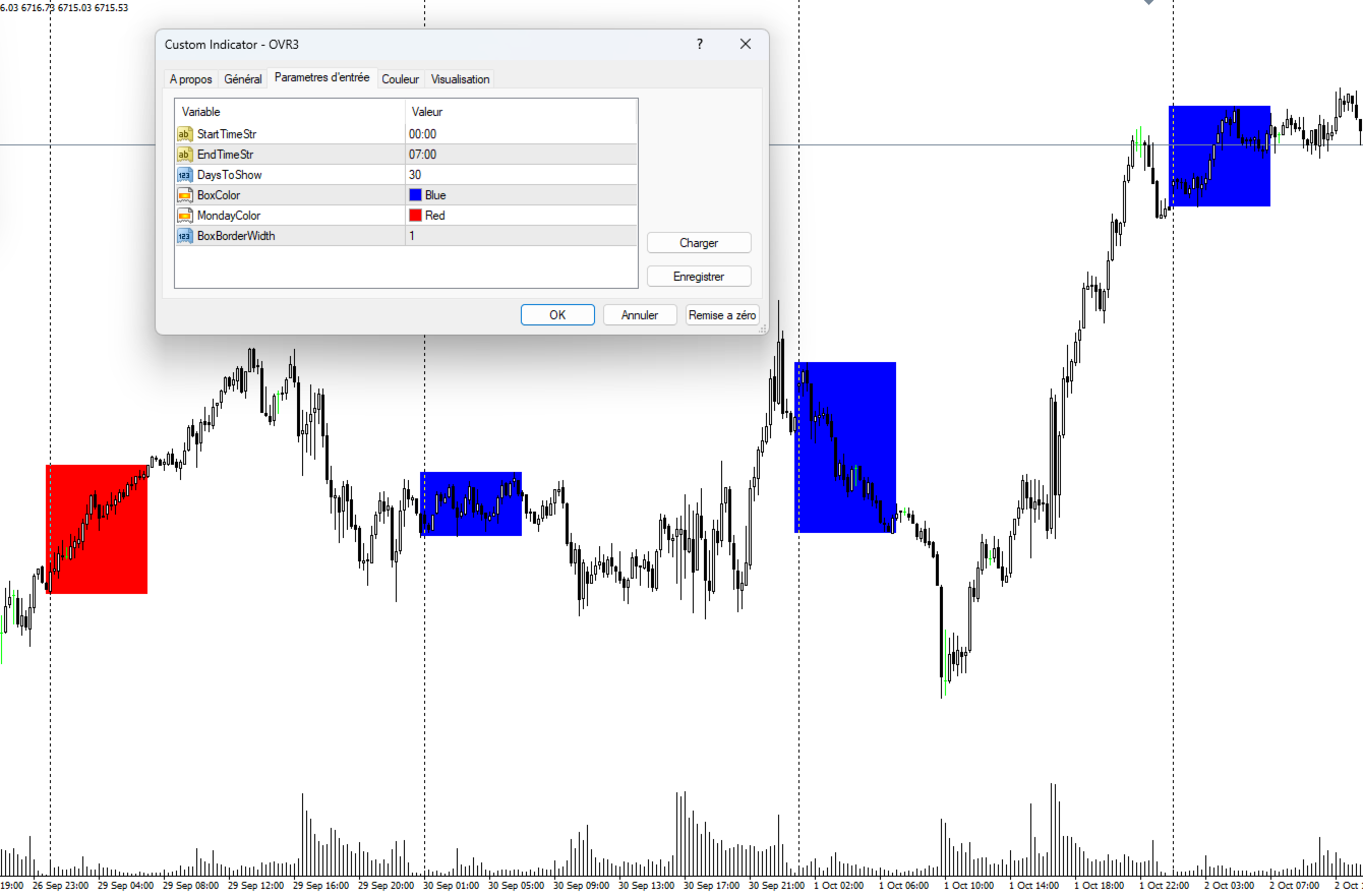This indicator allows traders to visualize and analyze specific time ranges directly on their chart by drawing rectangular boxes for each trading session.