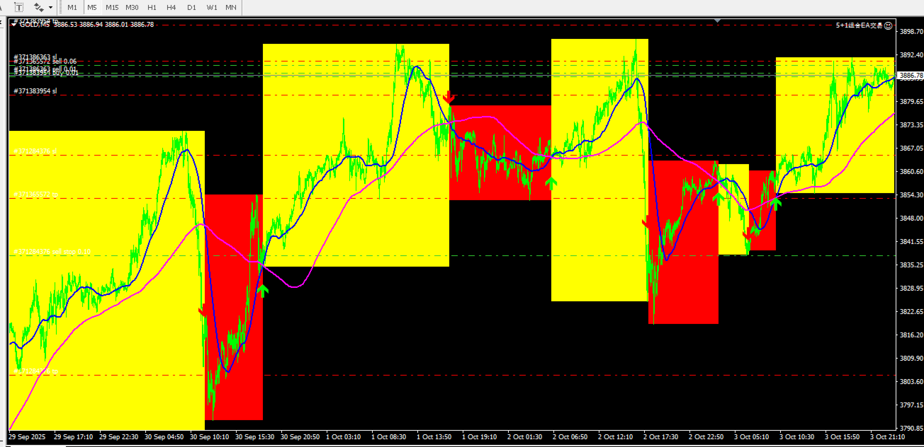 GoldIndicator_Zones_MT4_v6.4 is designed for spot gold and other forex instruments. It identifies bullish or bearish trends using moving average crossovers