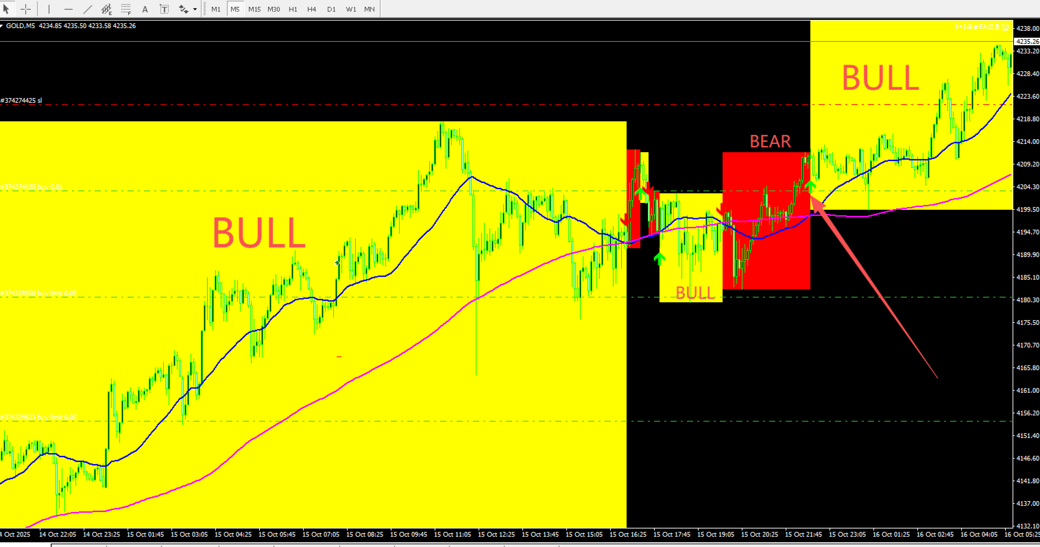 <li>Clear arrow signals at MA crossovers</li>