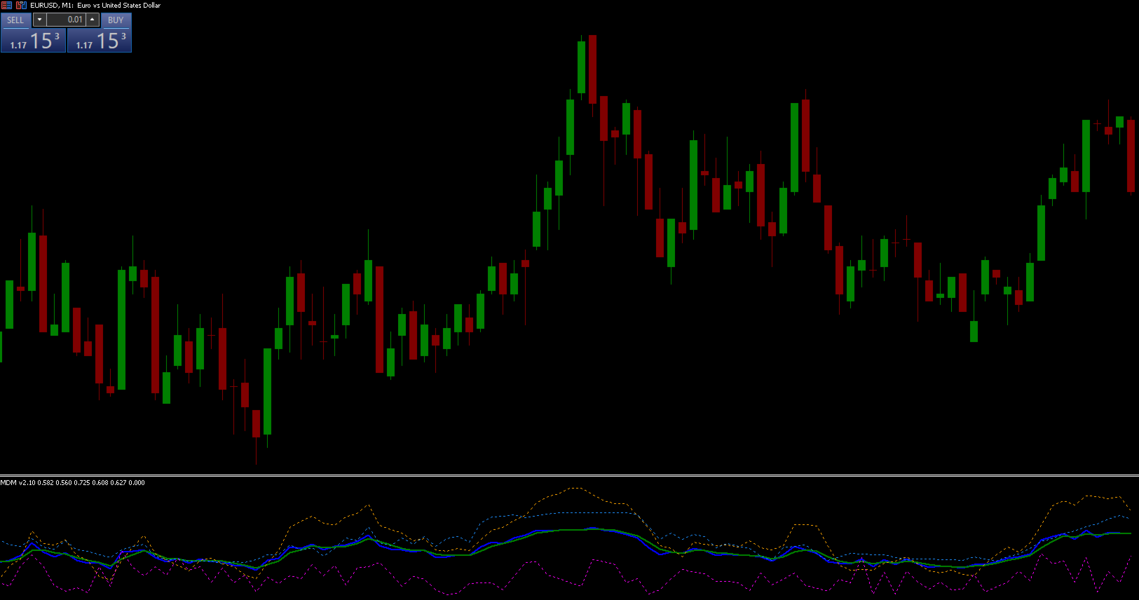 MDM indicator is the IMM (Integrated Market Momentum) line, which oscillates between 0 and 1. Here's how to interpret it: