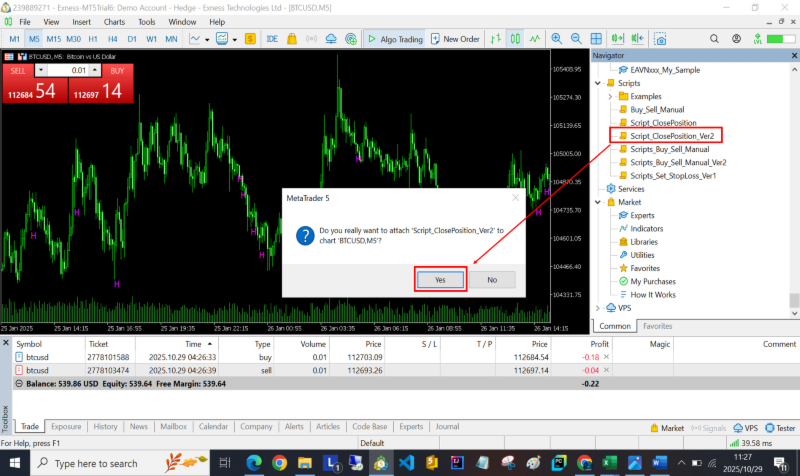 The “Close All Positions” script is a lightweight and efficient tool designed for traders using MetaTrader 5. Its main purpose is to help users quickly exit all active trades with a single click, especially during volatile market conditions or when risk management requires immediate action. Instead of manually closing each position one by one, this script automates the process, saving time and reducing potential errors.