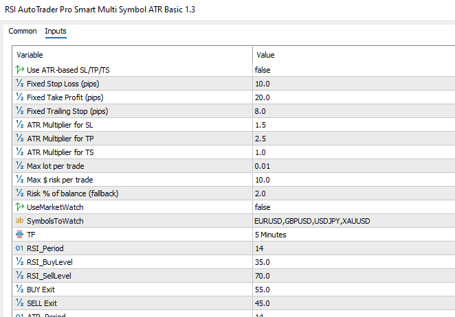 RSI AutoTrader Pro Smart Multi Symbol ATR Basic