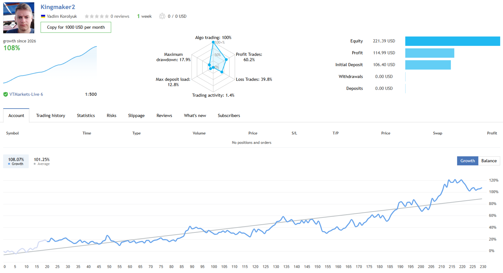 Kingmaker is ideal for traders who value precision, speed, and consistency. Its goal is to turn gold’s volatility into profit — even from the smallest price movements.