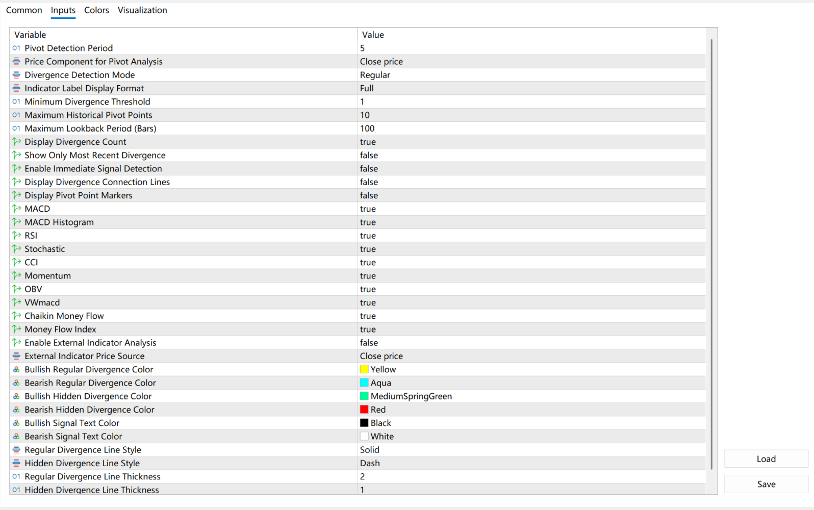 È possibile impostare una soglia minima di conferme (showlimit) per filtrare i segnali deboli e concentrarsi su divergenze più affidabili.