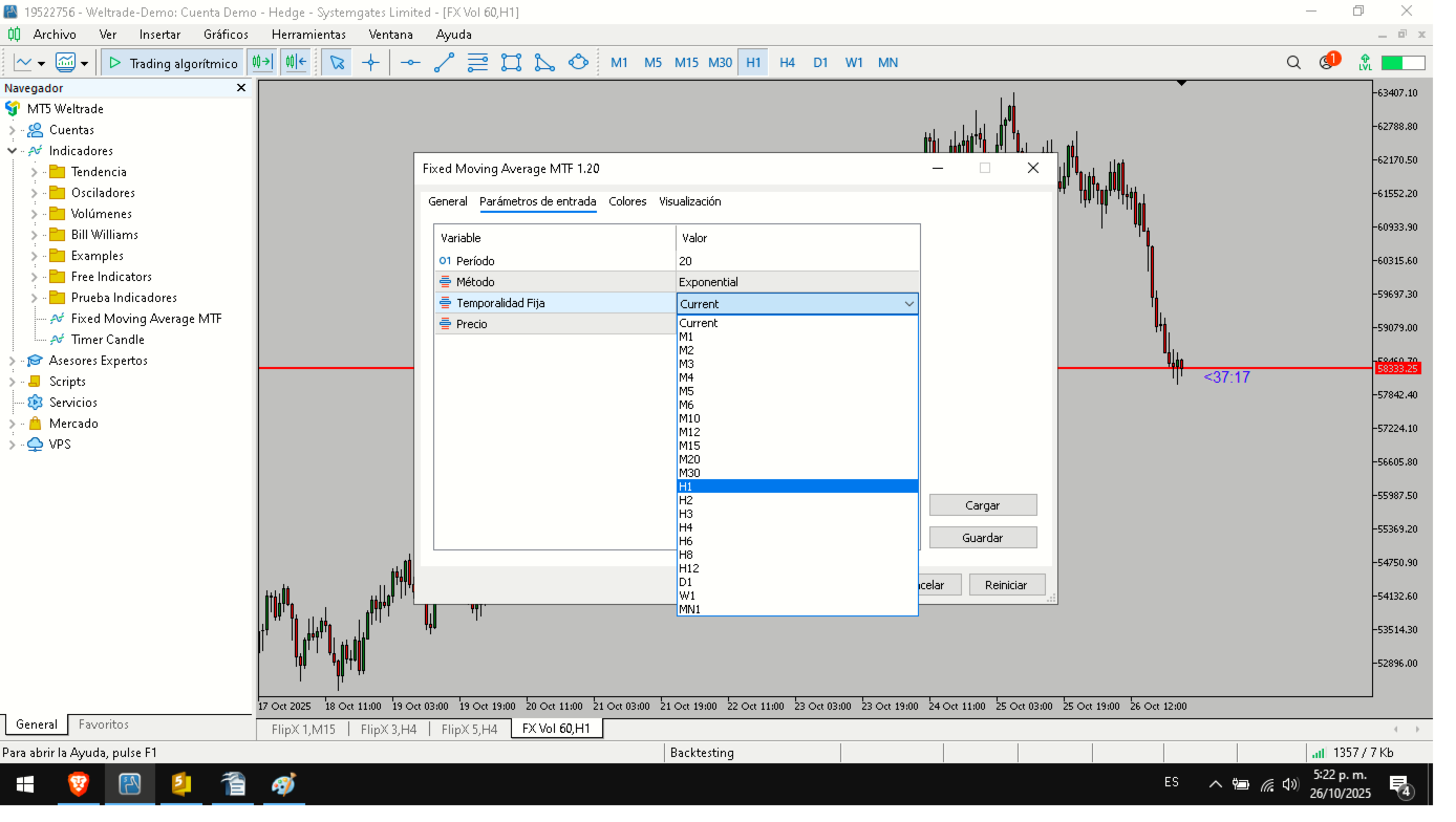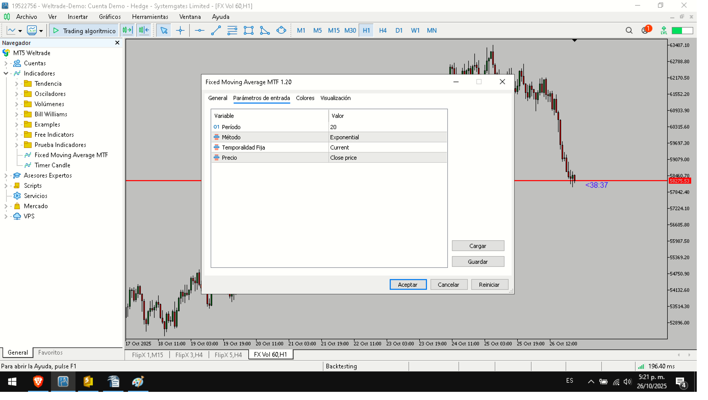 This indicator allows you to view a moving average from any timeframe (M5, H1, H4, D1, etc.) directly on your current chart, preserving its original values from the timeframe you selected.