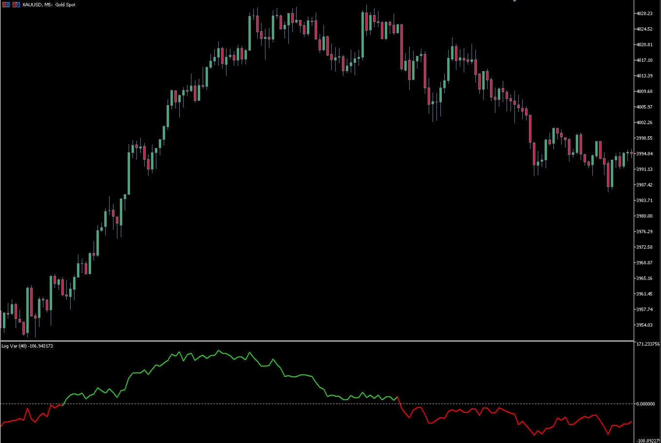LogVar è un indicatore che calcola e mostra la variazione logaritmica del prezzo, un modo più preciso per misurare i cambiamenti percentuali tra periodi.