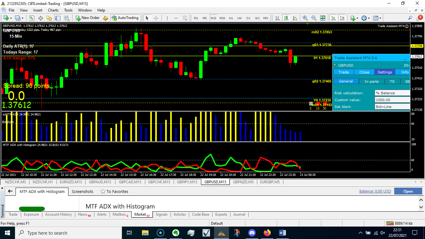 Your indicator doesn't work. Both of the charts below were taken at the saem time on the same pair. The ADX values are the same. On is on the 15M chart and the other is on the 5M. The values for DI+ & DI- (red and green lines at the bottom) should show the same values. They don't and are even in the wrong order.