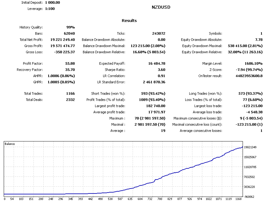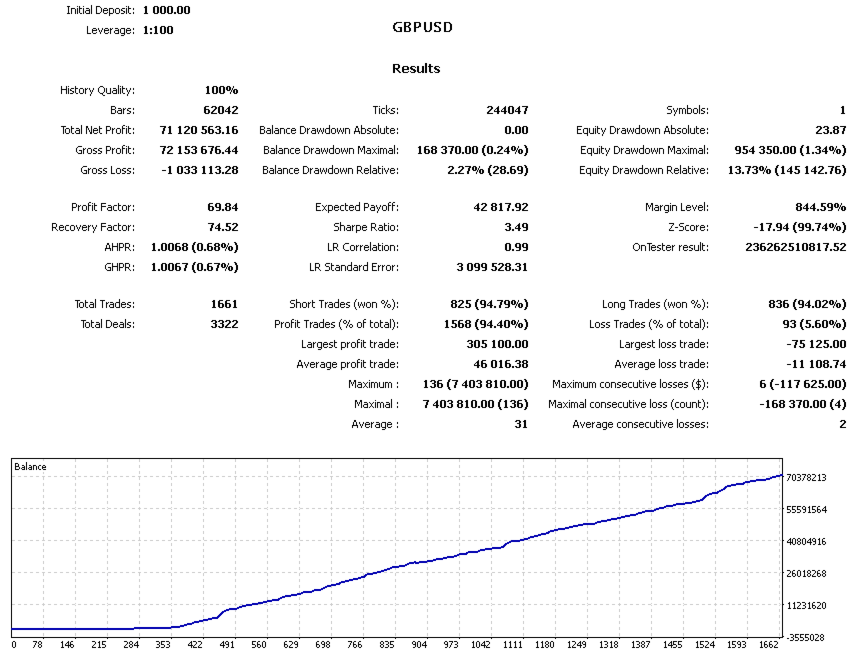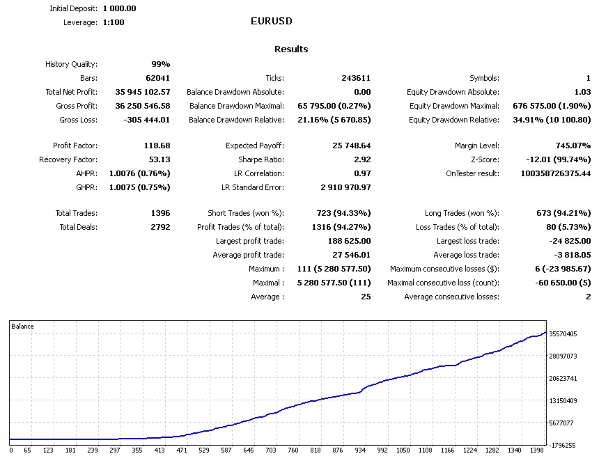 This expert advisor can be launched on any time frame and with any currency pair, as well as on any broker's server. It is recommended to trade on liquid currency pairs and use a VPS for stable operation. Intuition Bot is ideal for beginners, as you can start trading with a capital of just $1,000 and a minimum lot size of 0.01.
