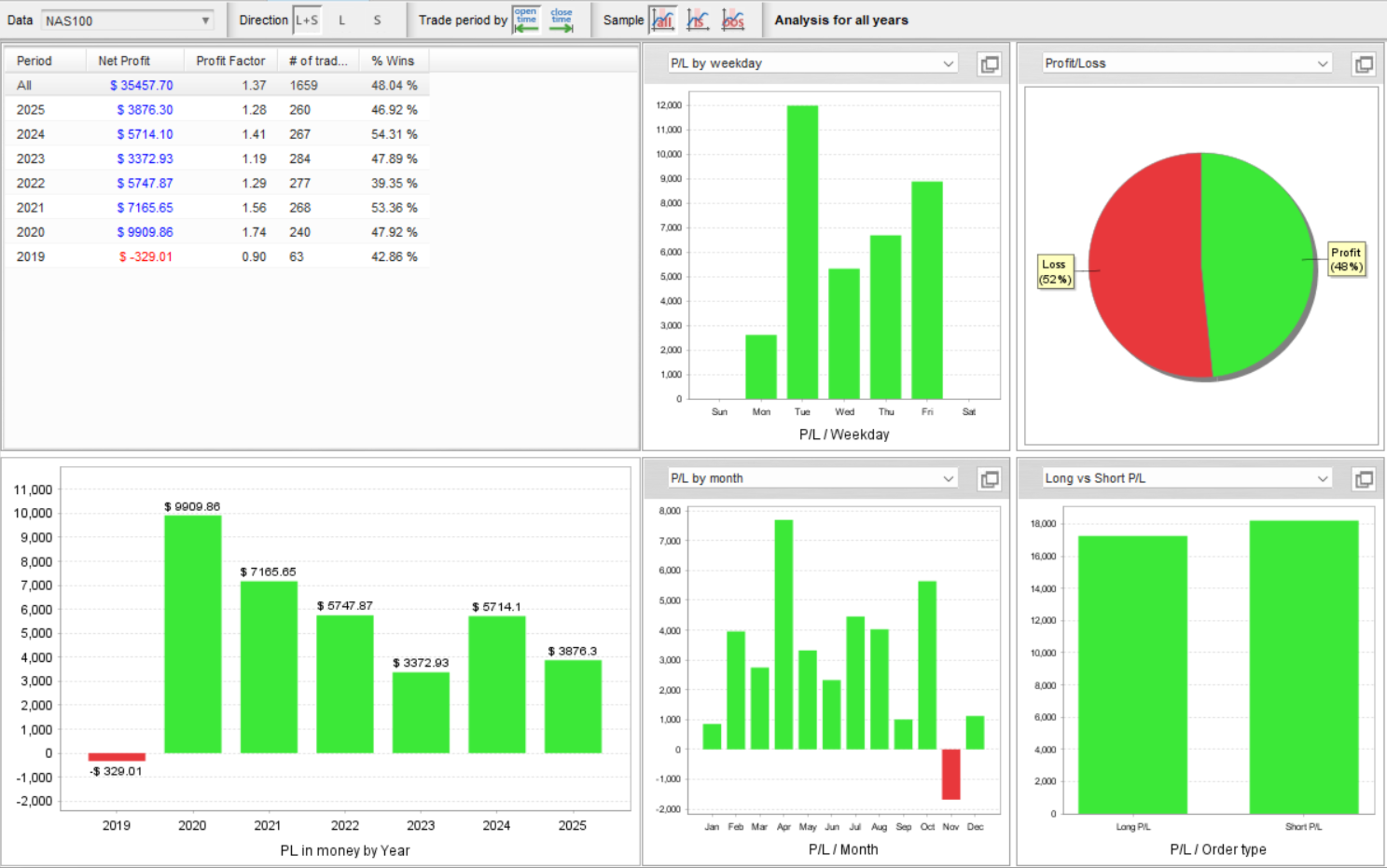 RangeBreak is an intraday absolute-return trading strategy, it is designed to capture directional market sessions on the Nasdaq-100, to be used on CFDs or futures.