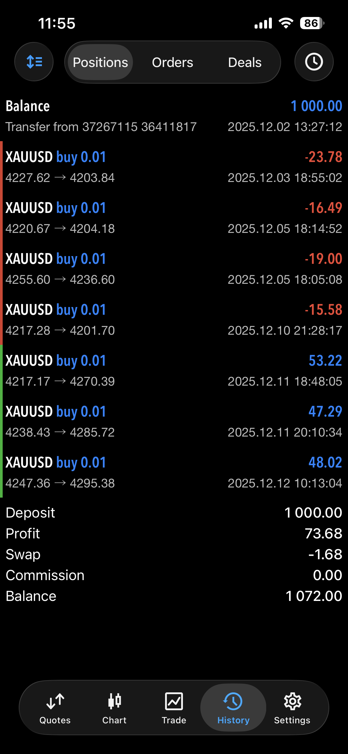 It hit sl 4 times with small losses, I gave it time and it hit 3 tps with big gains. Now in 7% profit. (Screenshot Attached)