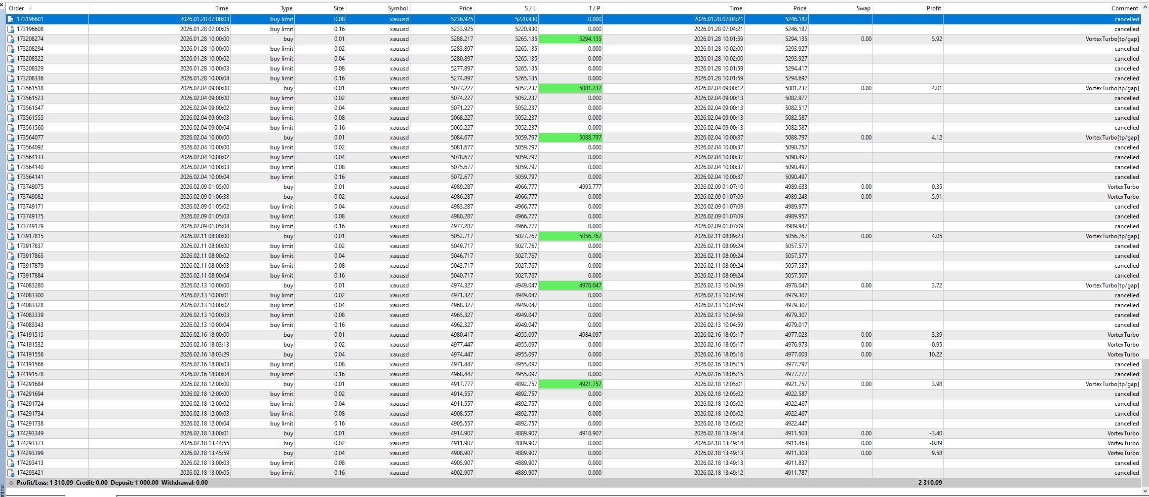 Since Iam a fan of Vortex Gold EA I'm very curious to see how Vortex Turbo performsHi, I have the fortex EA online the other day and I like how it behaves. Here is the result from 7.1. to 8.1. 2026, it's less than 24 hours with minimal risk. :-) I am convinced that this will be another GREAT EA from Stanislav