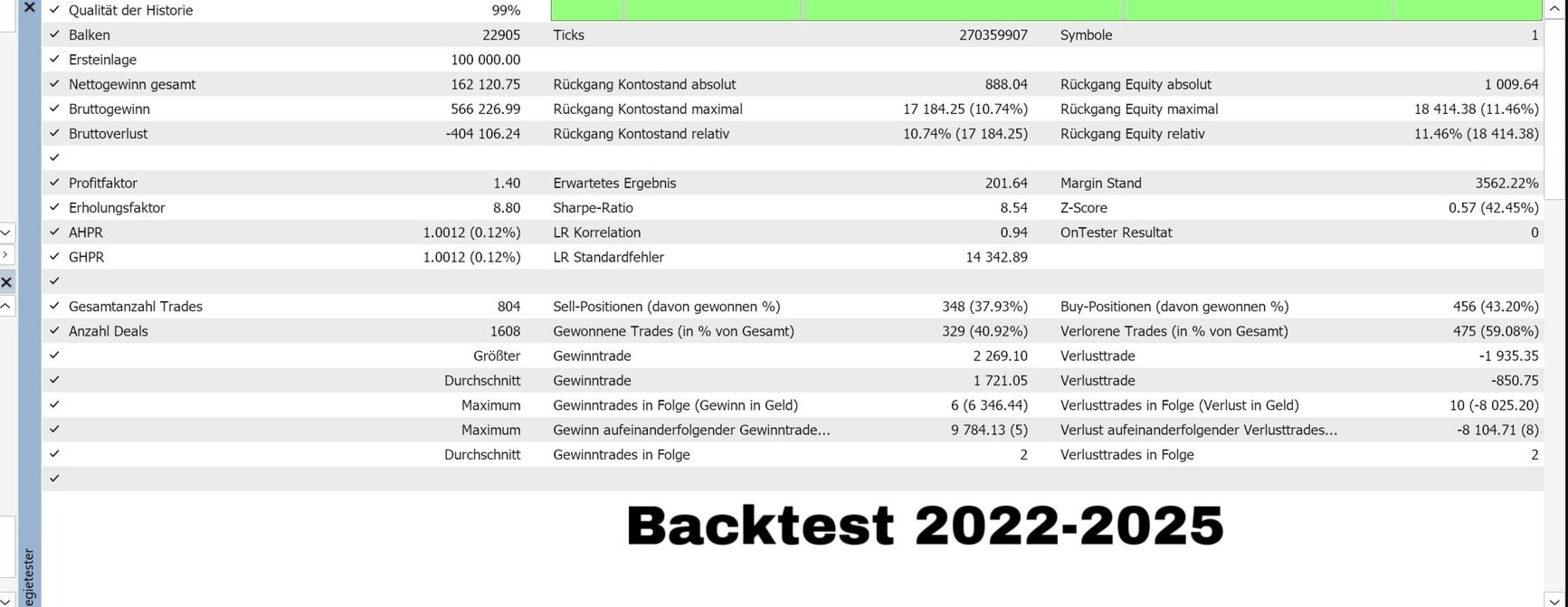 Habe den EA seit letzter Woche... der EA läuft super und ich konnte schon sehr saubere Trades mitnehmen. Der Support ist super, egal was für anliegend man hat es wird einem schnell und gut geholfen. Meinerseits eine klare weiterempfehlung.