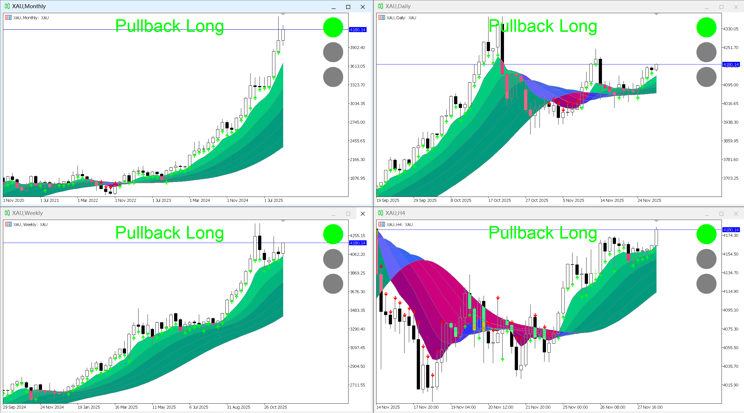 • Example: In trend trading, if the monthly, weekly, daily, and 4-hour charts all show a green light, the long position signals resonate, resulting in the highest entry win rate;