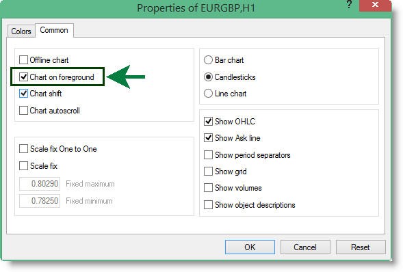 When you add MAC on your chart it is better to make chart on foreground. Follow this steps. From Charts Menu choose Properties or click F8 then Common then sign on "Chart on foreground" option.