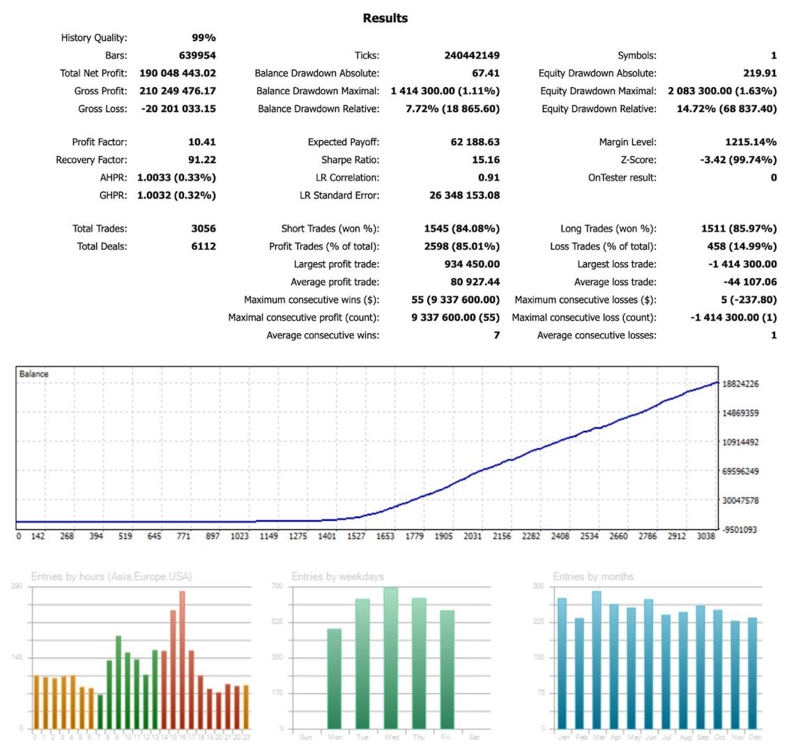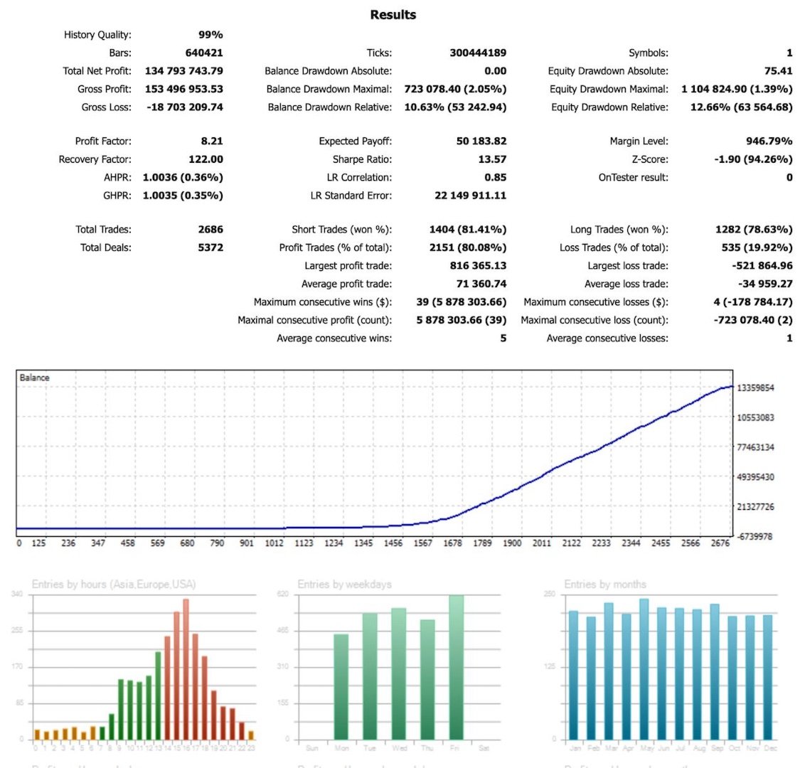 L'algoritmo è stato sottoposto a approfonditi test sui dati storici e ha dimostrato la sua efficacia in condizioni di mercato reali. I risultati dimostrano una crescita costante dei depositi con rischi controllati.
