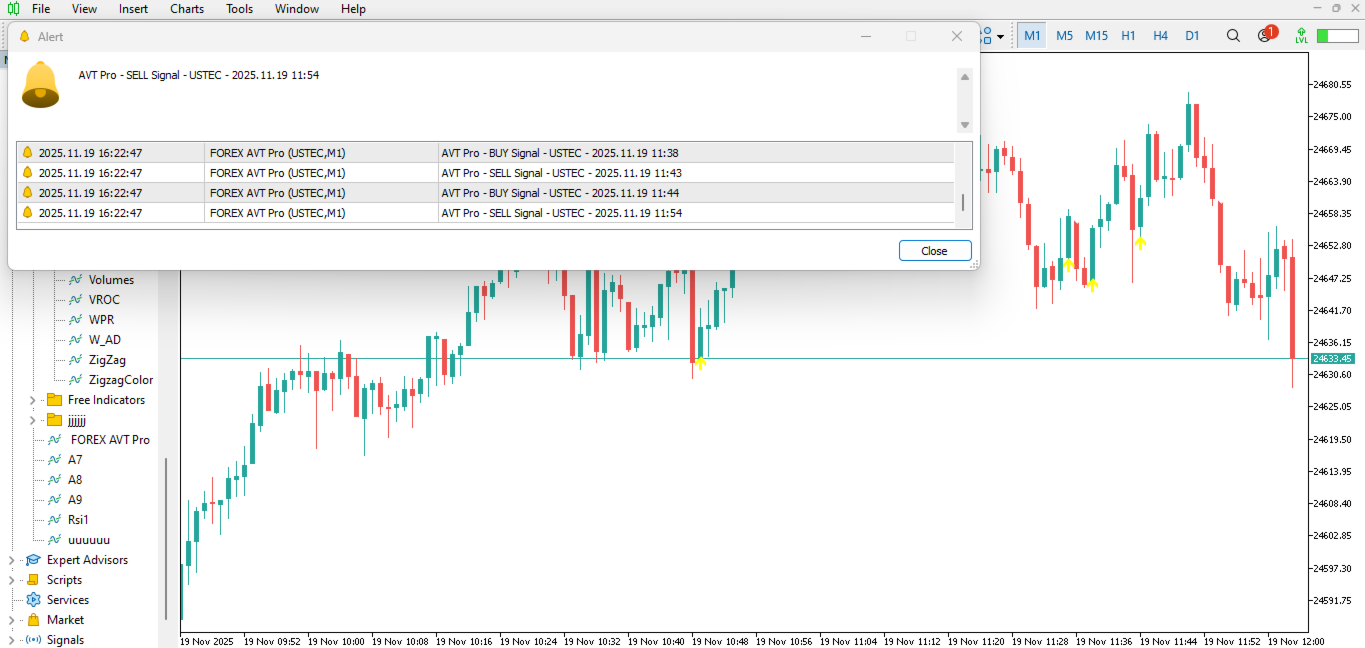 3.Alert System= when Signal appear then Mt5 itself Pop up a alert Box.