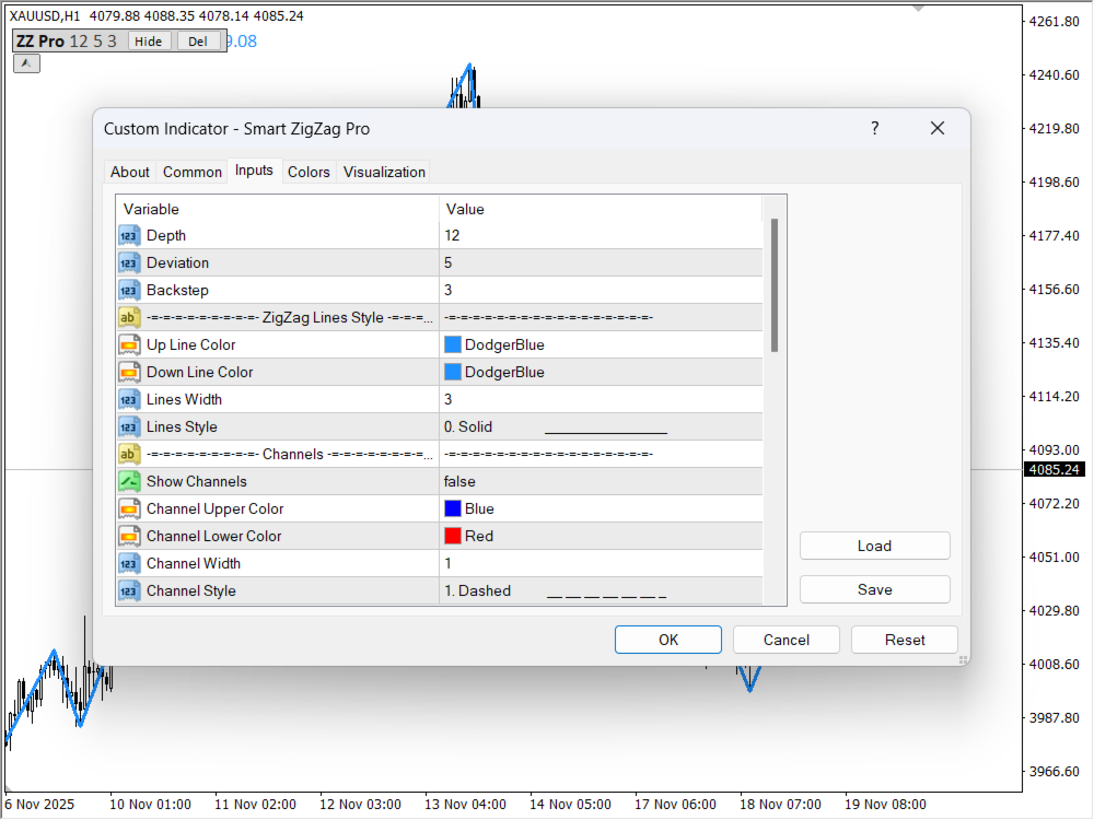 Smart ZigZag Pro è l'edizione professionale dell'indicatore Smart ZigZag, offrendo strumenti di analisi avanzati e capacità di visualizzazione migliorate per i trader seri che necessitano di approfondimenti di mercato più profondi. L'indicatore include un pannello di controllo intelligente integrato nel grafico che mostra i valori attuali e le informazioni chiave, con 20 buffer di dati che forniscono dati completi per analisi avanzate e integrazione con Expert Advisors.