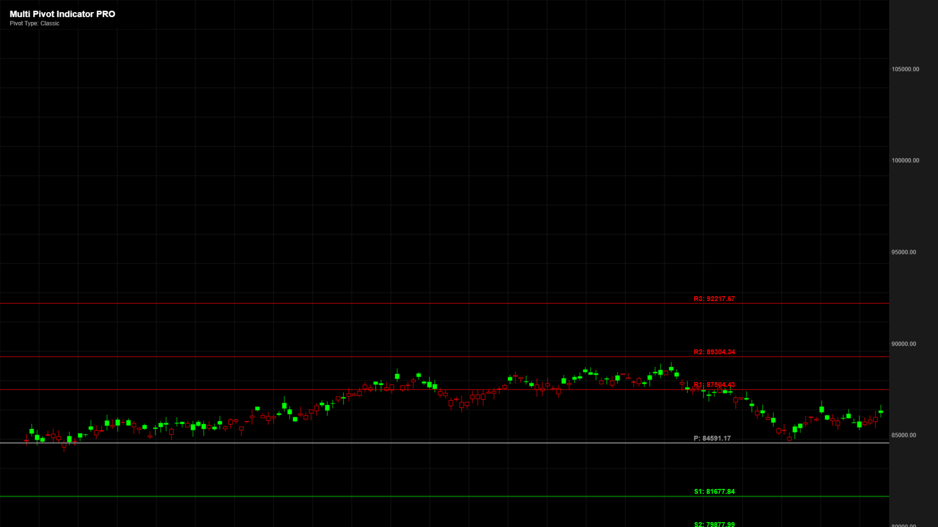 Clear visual representation of all pivot levels on your chart with color-coded lines and price labels