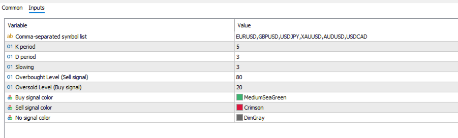 - Symbols: List of pairs to scan (e.g. EURUSD,GBPUSD,USDJPY).