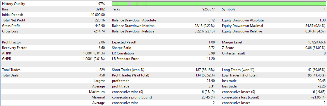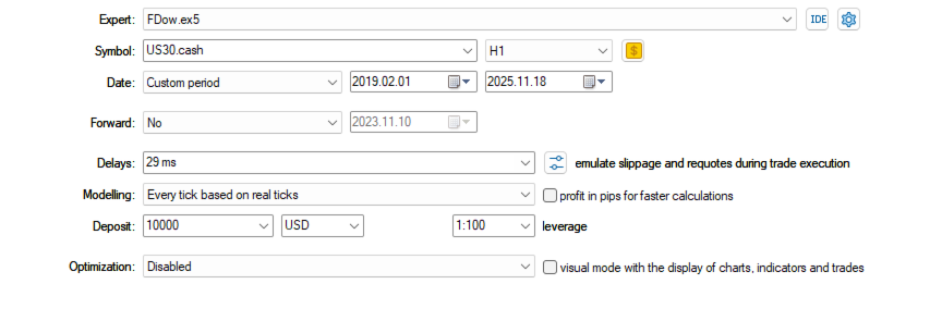 Unlike complex and over-engineered strategies, FDow relies on pure trend-following logic combined with volatility-adaptive risk management, allowing it to take both buy and sell trades without directional bias.
