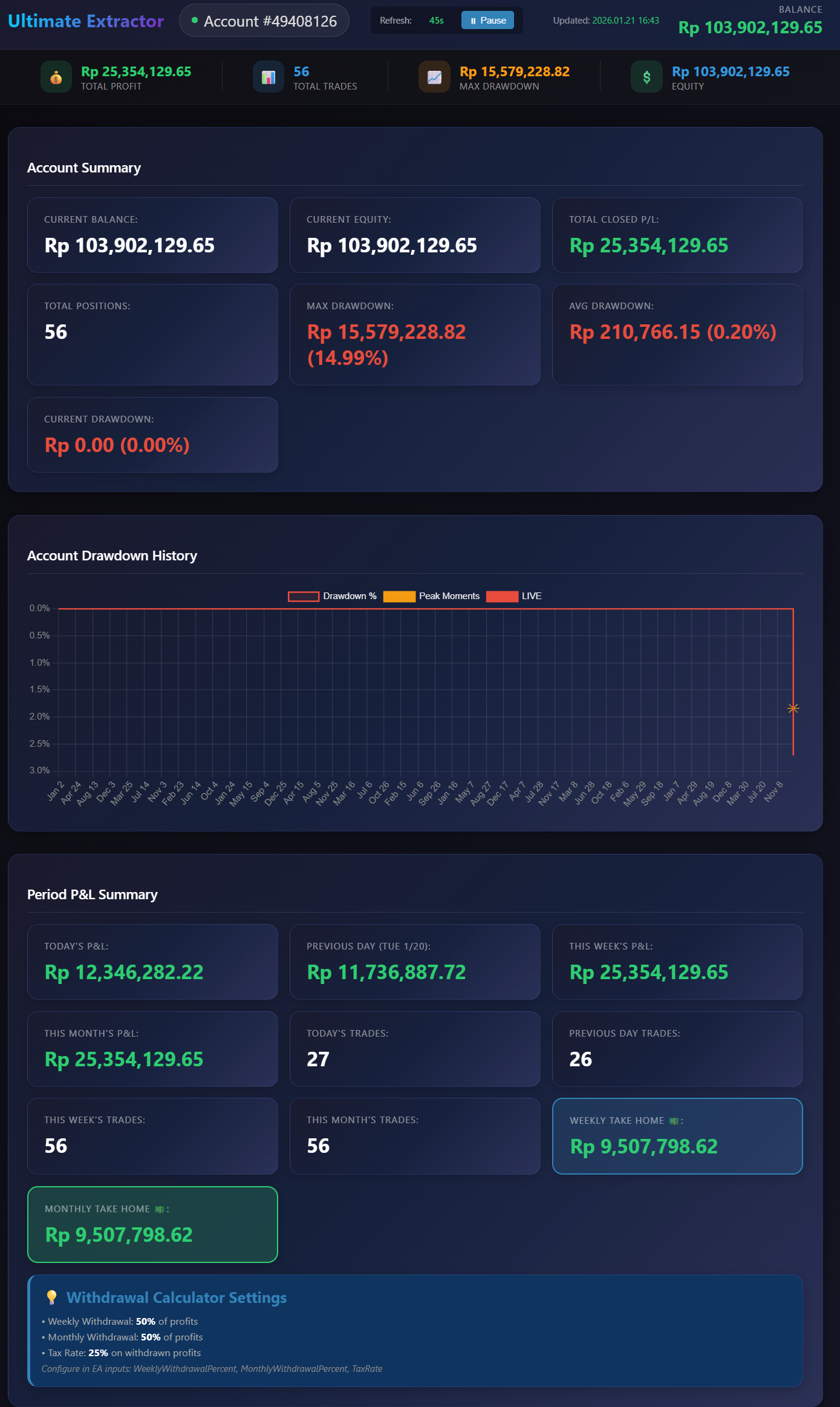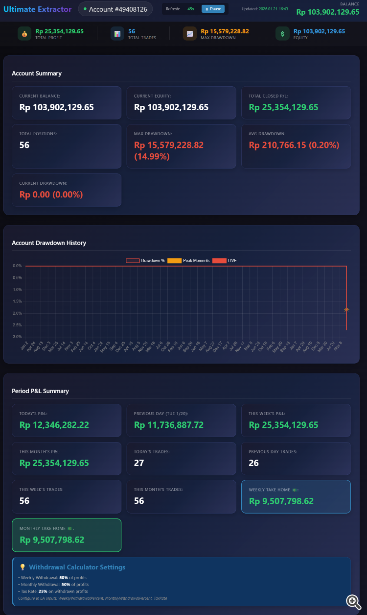 Supports IDR (Indonesian Rupiah) accounts with accurate calculations.Works great for my setup — well done.