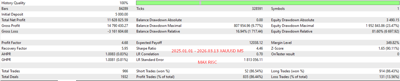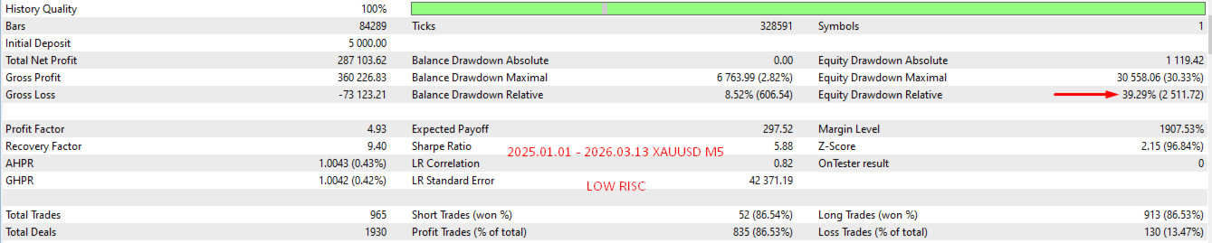 The Expert Advisor is designed for hedging accounts, as it trades simultaneously in both directions. You can use it for trading a single order or a grid of orders in martingale mode. It uses a built-in indicator consisting of a combination of 5 candlesticks with flexible settings. There is a limit on the number of symbols that can be traded simultaneously. Trading can be performed on any symbol with any timeframe, but it has been optimized for gold trading.