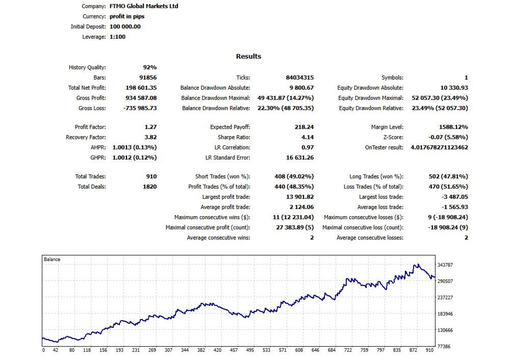 Optional filters are included for changing market conditions (trend, RSI, candle size, and session), but the EA currently performs best with minimal filtering and a clean setup.