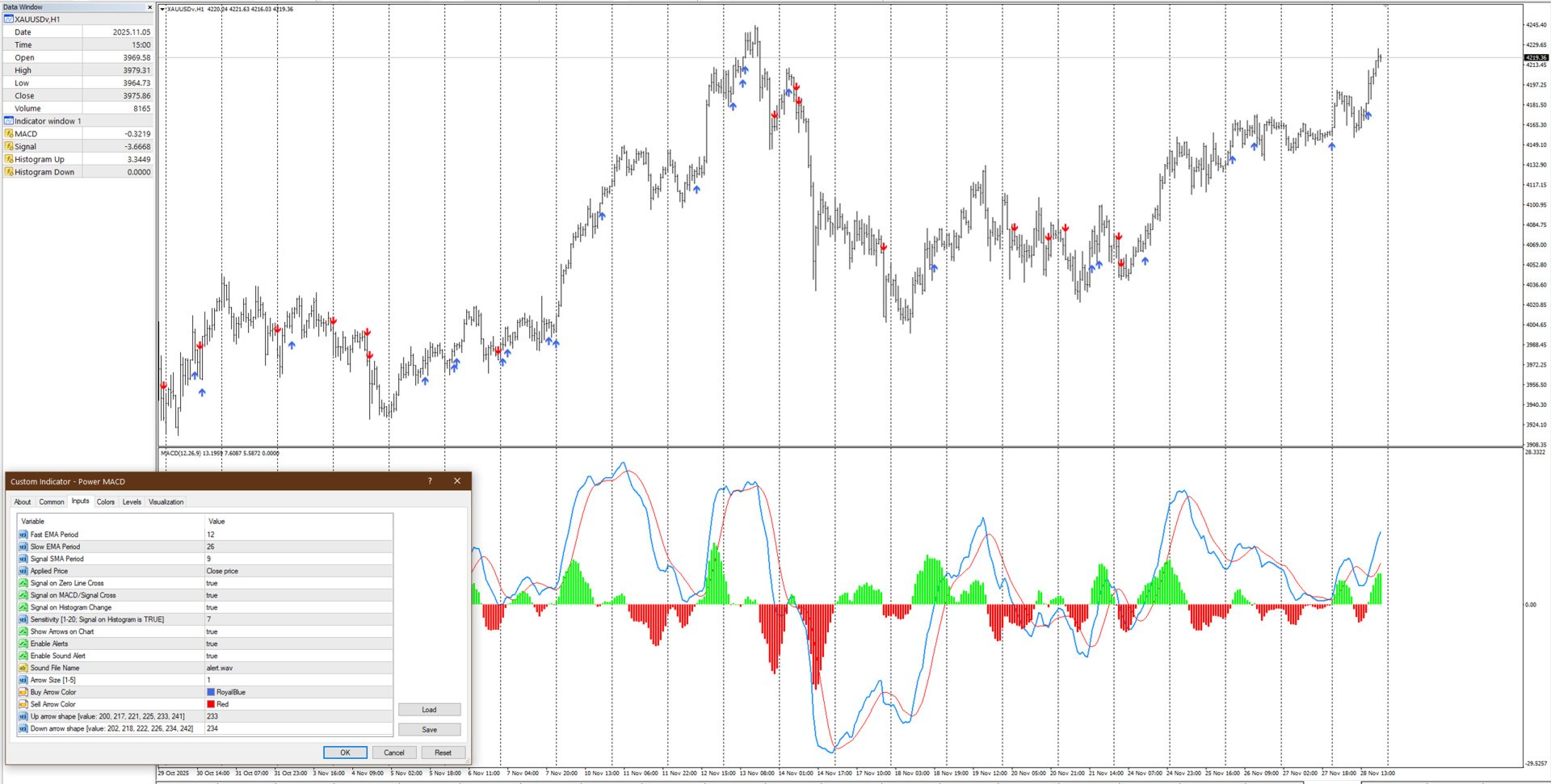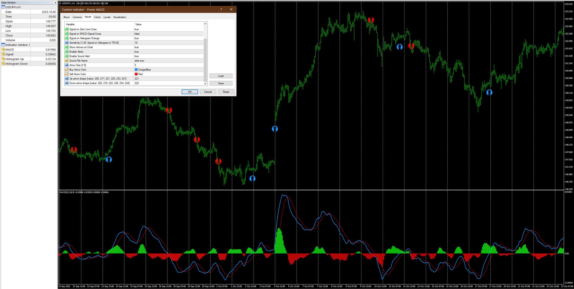 - Histogram Change: Signals when histogram changes direction, with a Sensitivity factor