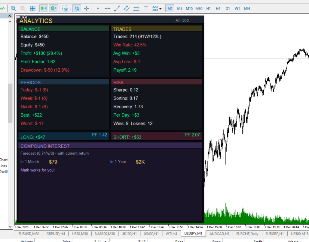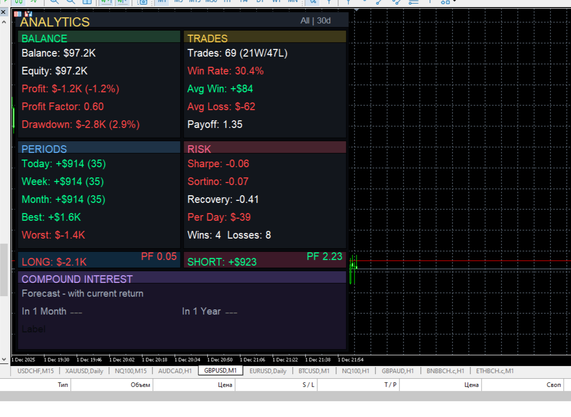 Professional Trading Analytics shows the truth about your trading — right on the chart, in real time.