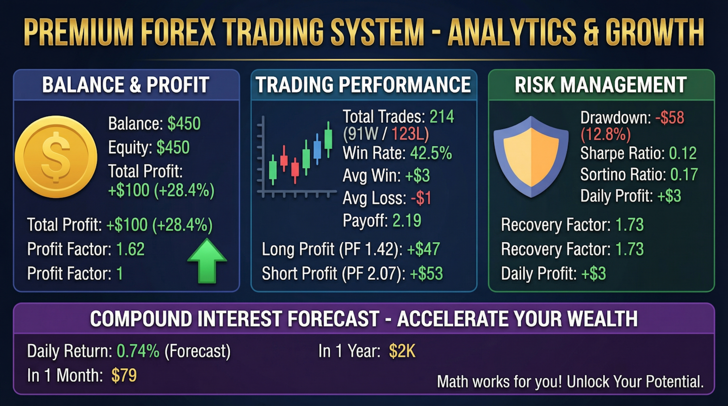 - Includes swaps and commissions in calculations.