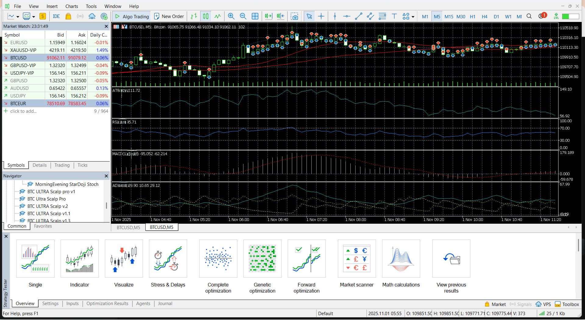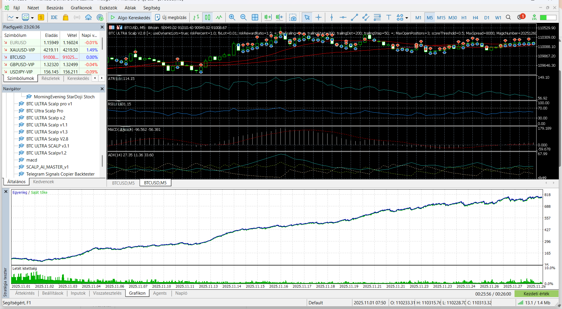 A BTC Ultra Scalp Pro egy teljesen automatizált Expert Advisor, amelyet kifejezetten a Bitcoin (BTCUSD) piac magas volatilitására terveztek . A kockázatos martingál vagy grid rendszerekkel ellentétben ez az EA logikai alapú trendkövető stratégiát használ, amelyet fejlett volatilitásszűrők védenek.
