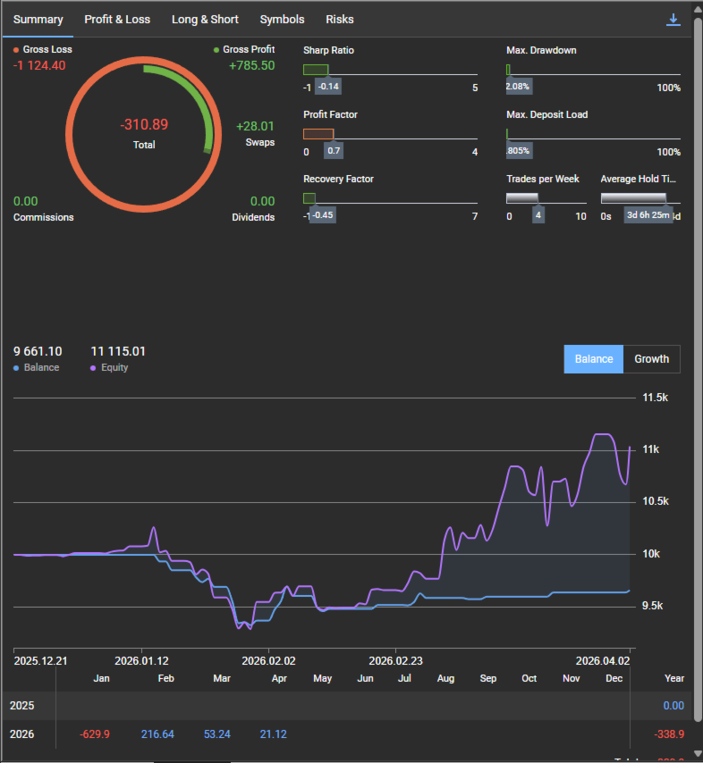Past performance of this EA is not indicative of future results and does not guarantee profits. Trading involves significant risk, and there is a possibility of losing your entire investment. Even with a diversified strategy, market conditions can change rapidly; therefore, you should only invest money you can afford to lose. Use this EA at your own risk and ensure it aligns with your objectives.