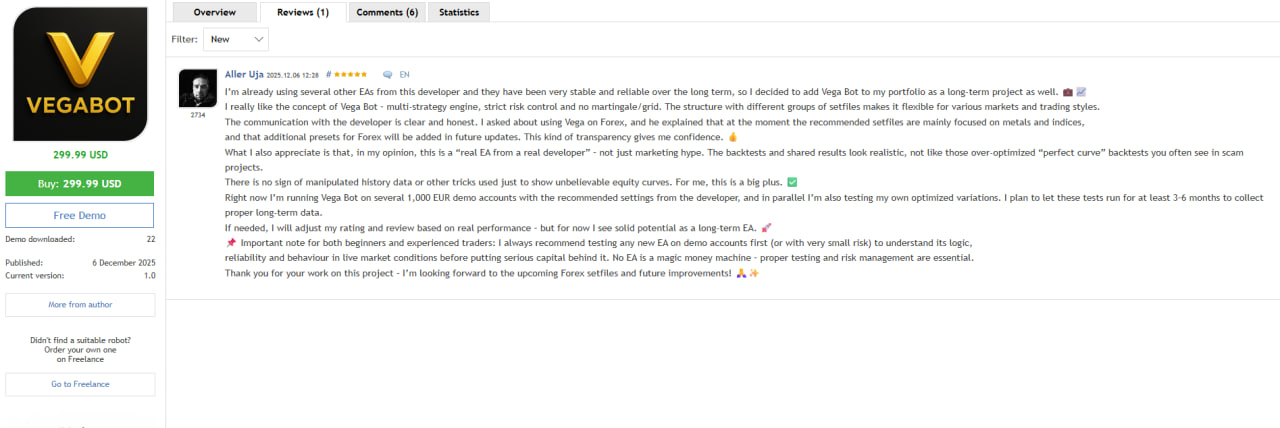 VEGA BOT has been receiving amazing feedback from early users, especially for its strong performance, stability, and flexibility for both personal accounts and prop firm trading.
