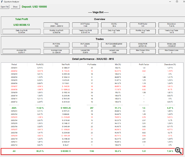 VEGA BOT is not only powerful for XAU trading, but also a multi-strategy system capable of trading many different pairs effectively.