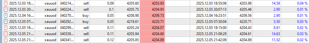 5-dec-2025: 100$ deposit with 50% auto risk calculated based on 650 SL points.