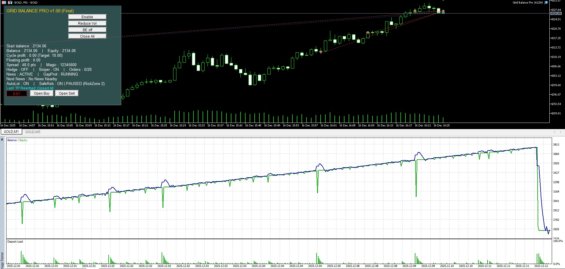 I am excited to announce a significant update for Grid Balance Pro ! Based on market analysis and your feedback, I have upgraded the system to be much safer and more efficient for XAUUSD trading.