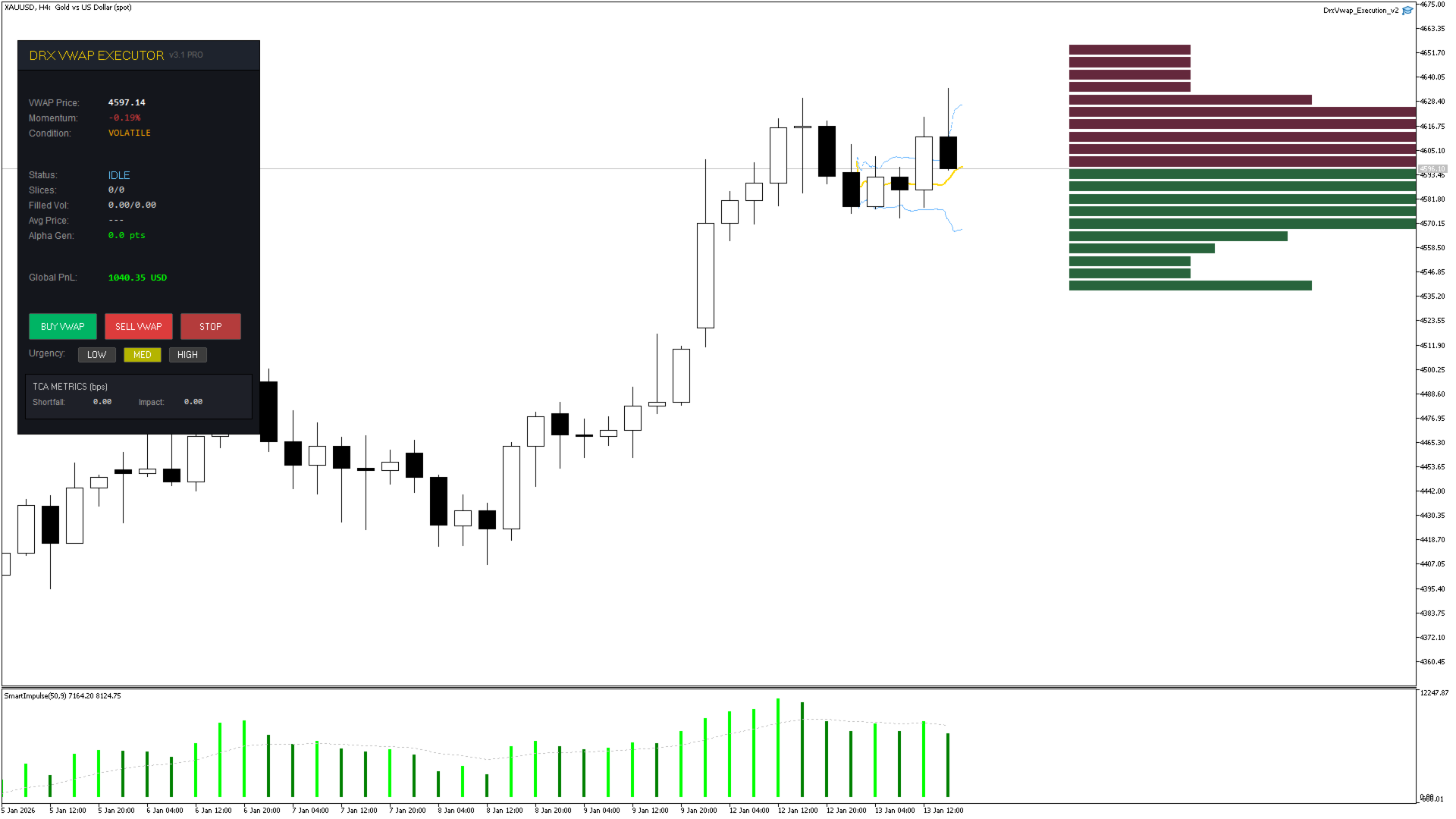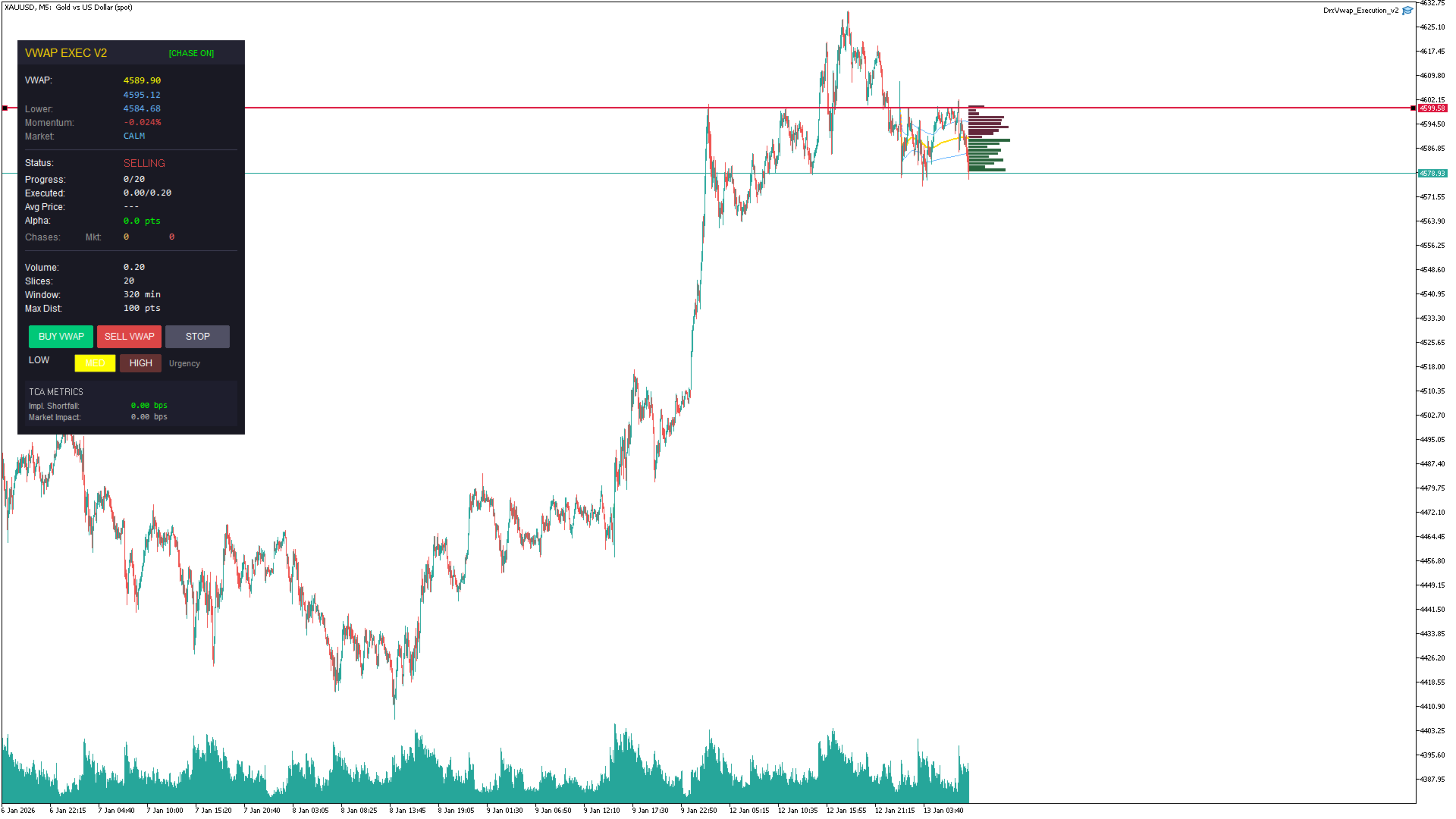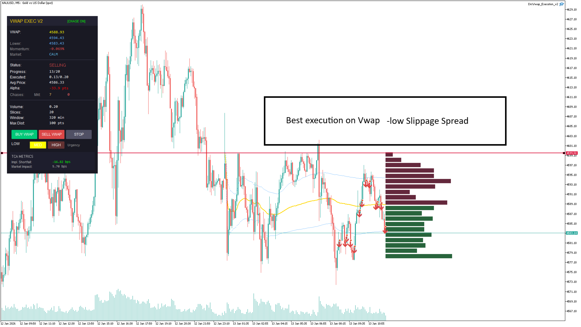 TCA (Analisi Costi Transazione): L'EA misura in tempo reale quanto "Alpha" (vantaggio di prezzo) hai generato rispetto a un ordine a mercato immediato.