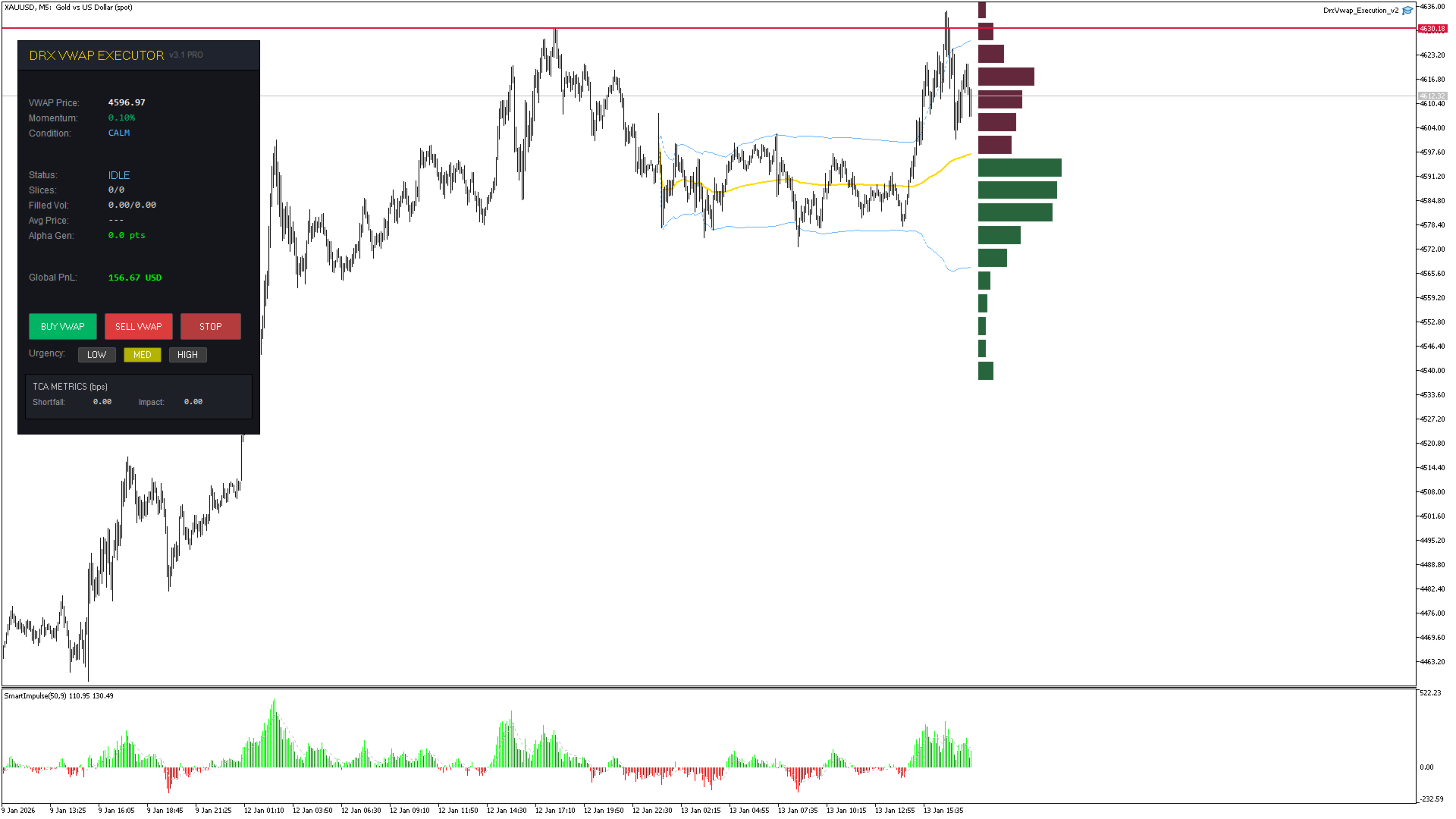 Conclusione: Il DRX VWAP Executor non è un generatore di segnali, ma uno strumento per la gestione professionale dei trade. Professionalizza il tuo ingresso e aiuta a ridurre drasticamente lo slippage.
