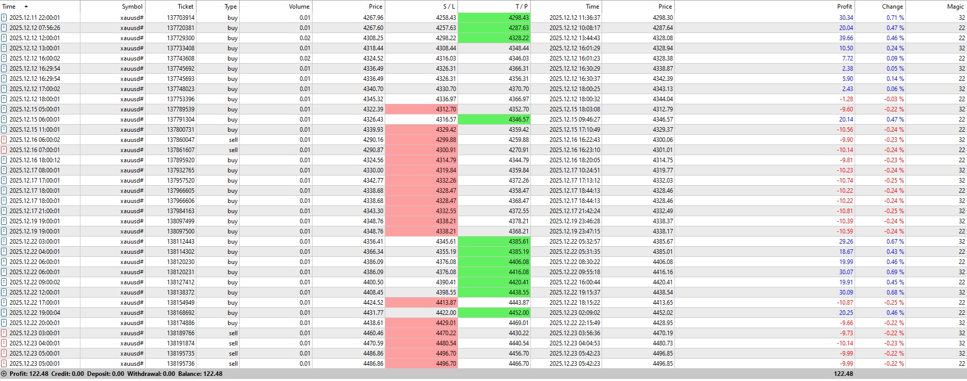The following results were generated by the Expert Advisor December 11, 2025 to December 23, 2025