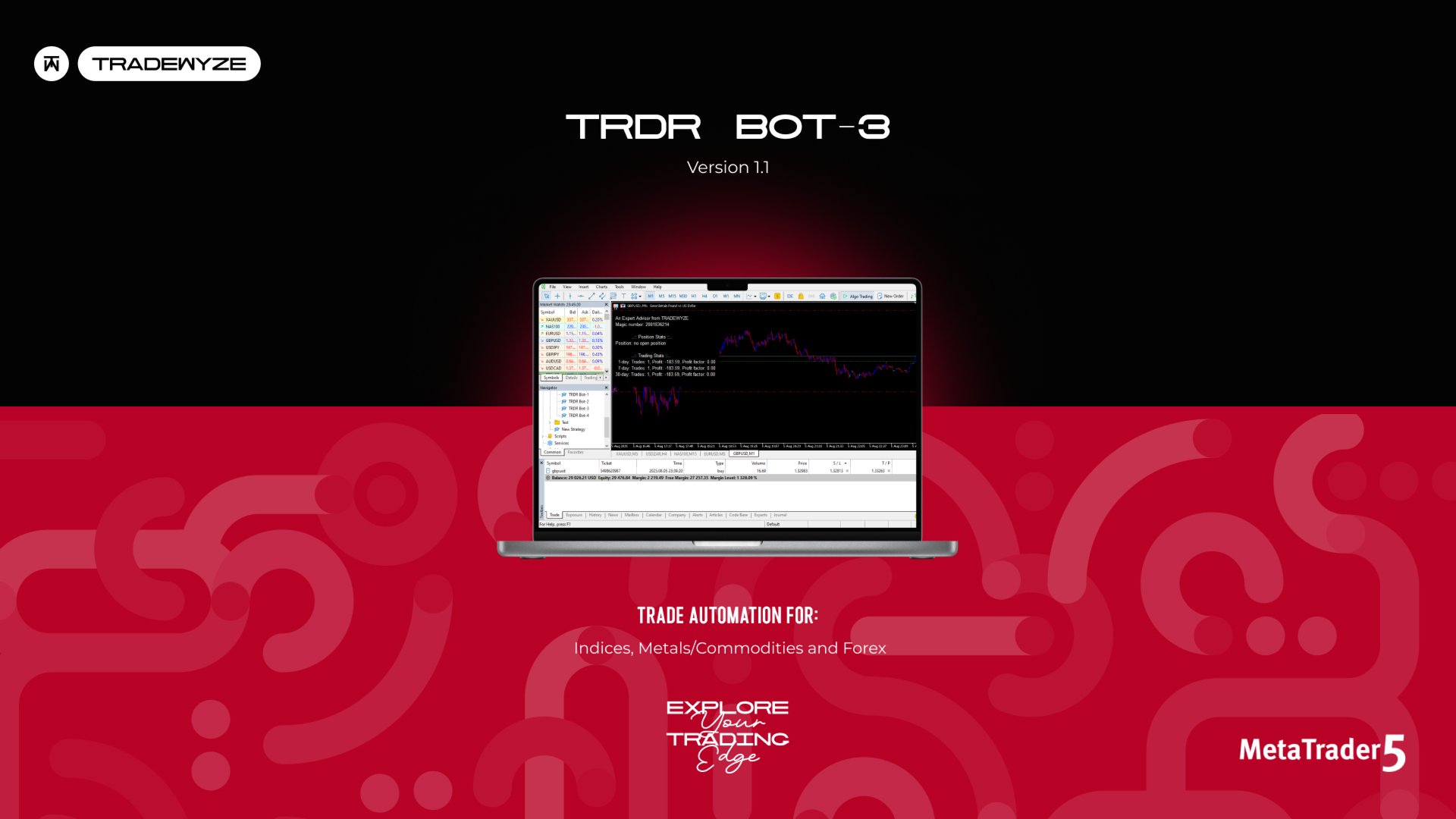 TRDR Bot-3 is a structured, momentum-focused Expert Advisor developed by TRADEWYZE, designed for traders who want a clean trend-confirmation system with disciplined exits and strong capital protection. The EA combines MACD, Bulls Power, and Momentum indicators to identify directional strength and exit trades when momentum begins to fade—making it ideal for sustained market moves in Forex, Indices and Commodities.