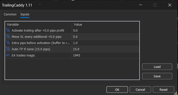 Perfect for risk management and money management, this profit trailing tool activates pip-accurate trailing (fully 5-digit safe) only after reaching your set profit threshold – by default, activation after 5 pips profit. Once triggered, it performs st ep trailing every 5 pips, moving the stop loss to lock in pips automatically and secure gains without constant monitoring.