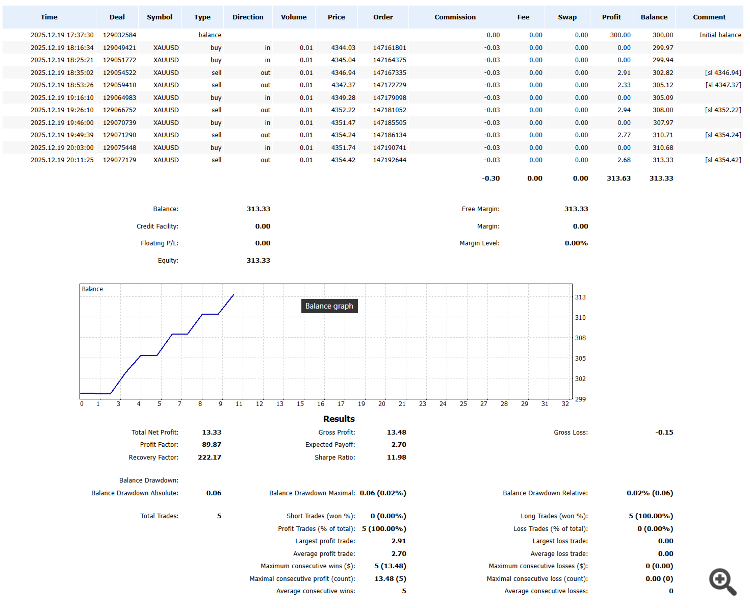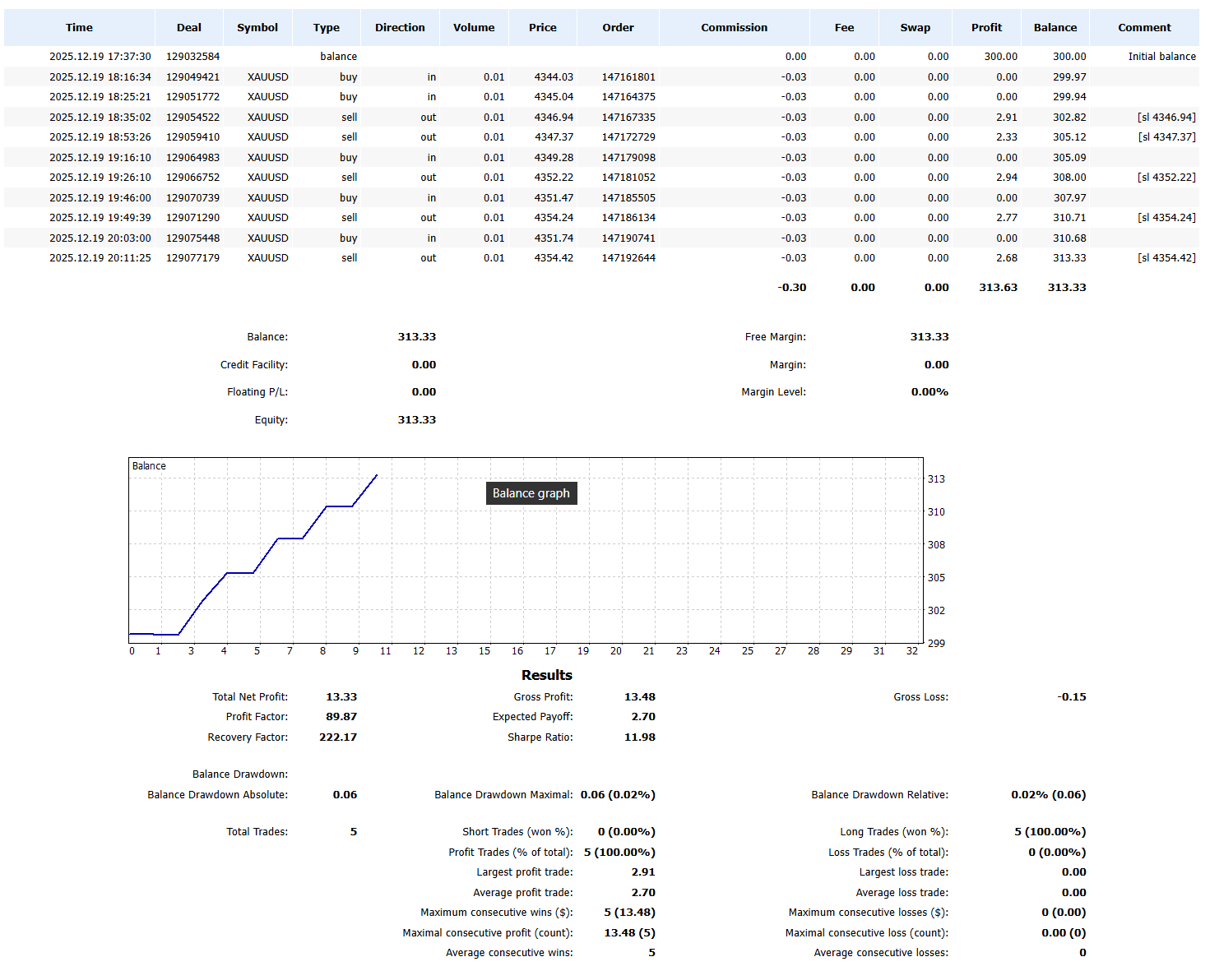 Live Testing results - XAUUSD - 19th December 2025 to 22 December 2025